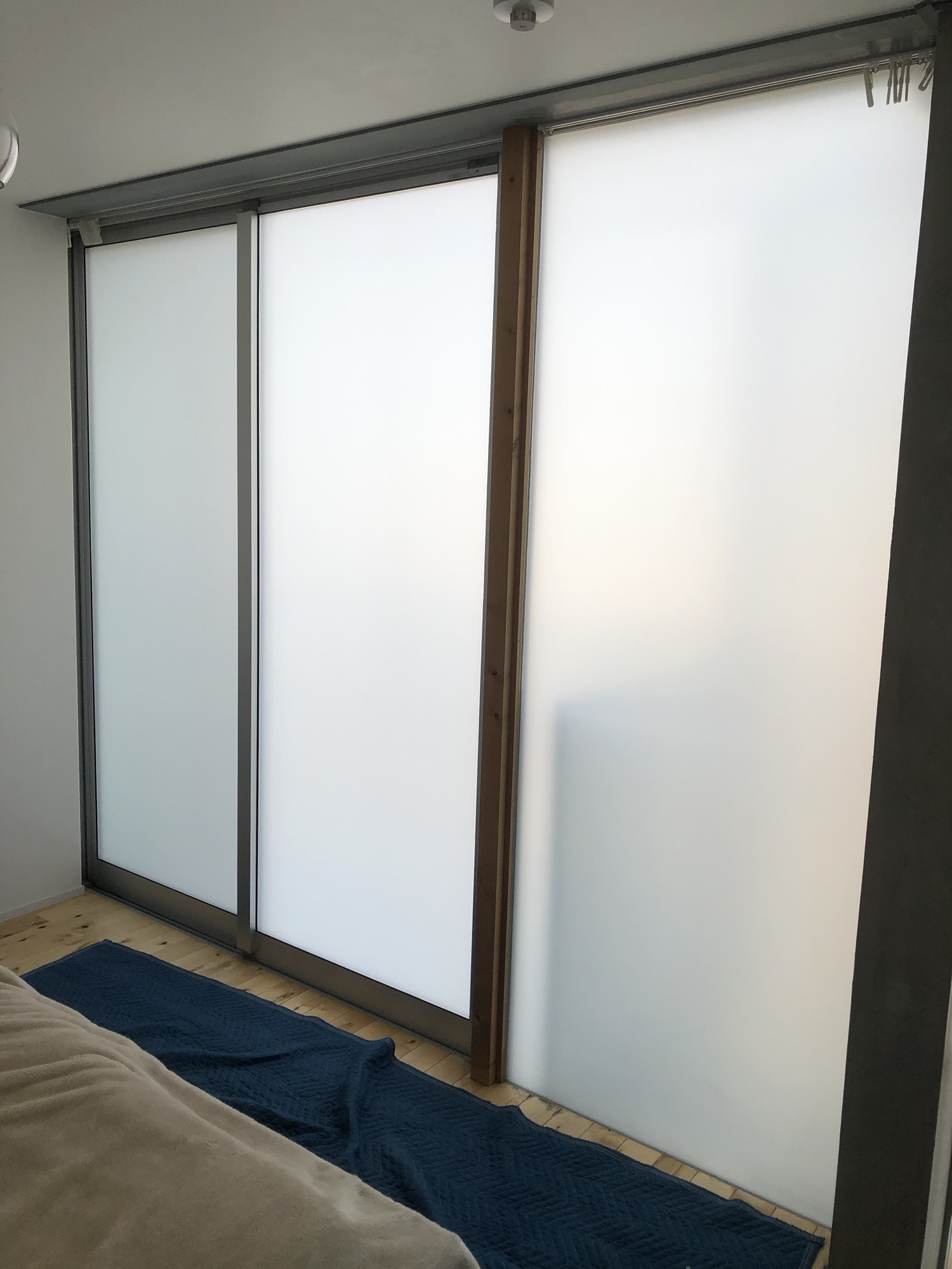 寝室には乳白タイプの3Mルーチェ、ルーフバルコニーと玄関はサンゲツGF1718、オフィスに3Mシルバー18と箇所により様々なフィルムを施工させて頂きました!