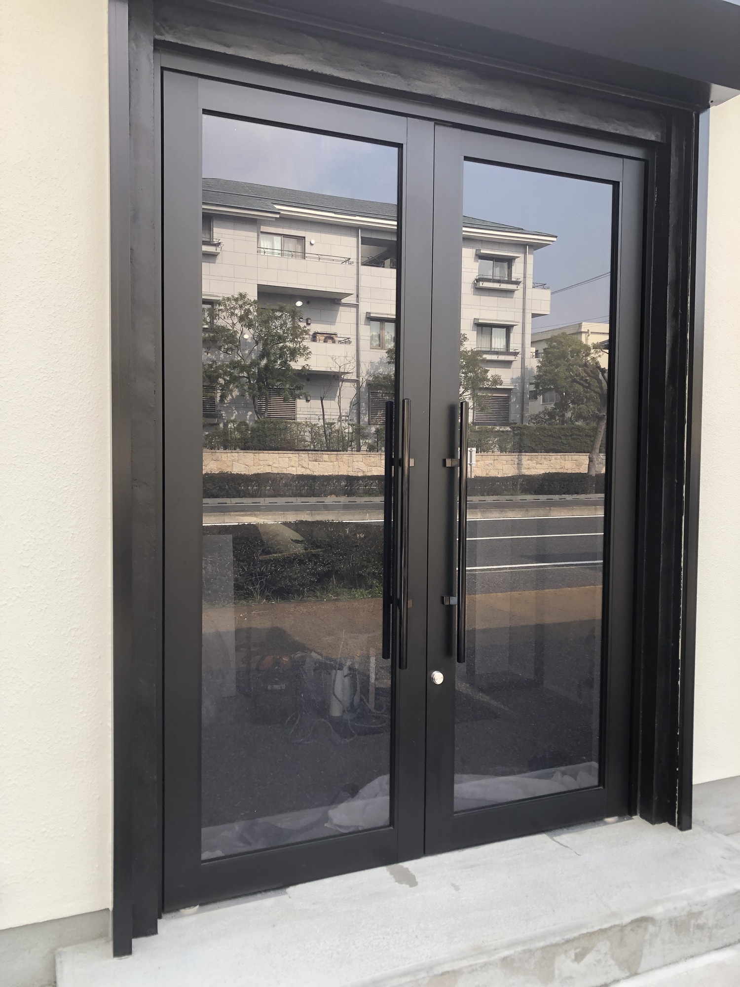 金属膜を施したミラータイプのフィルムだと外から店舗内が見えなくなる為、反射が少ないフィルムがご希望でした。