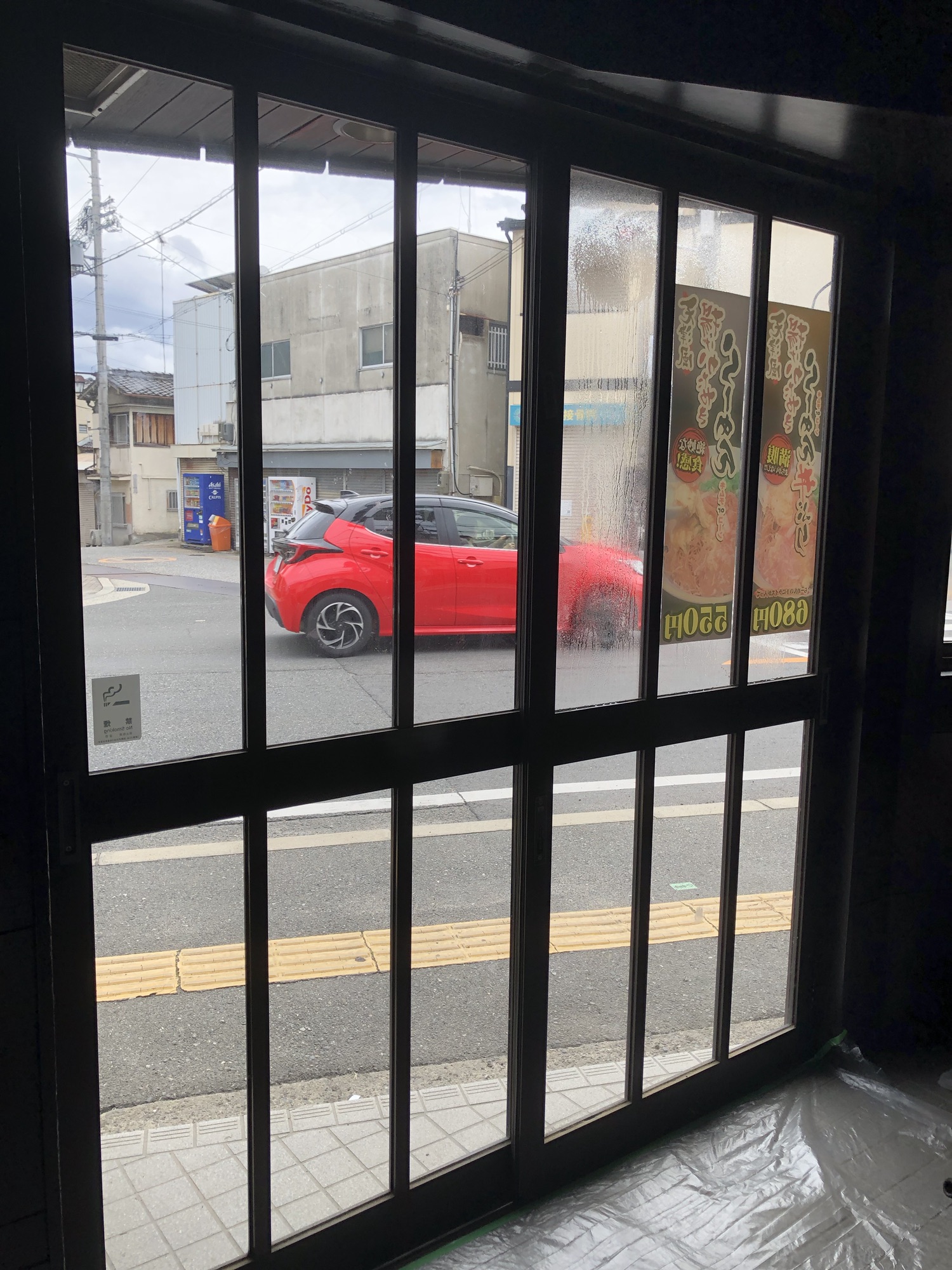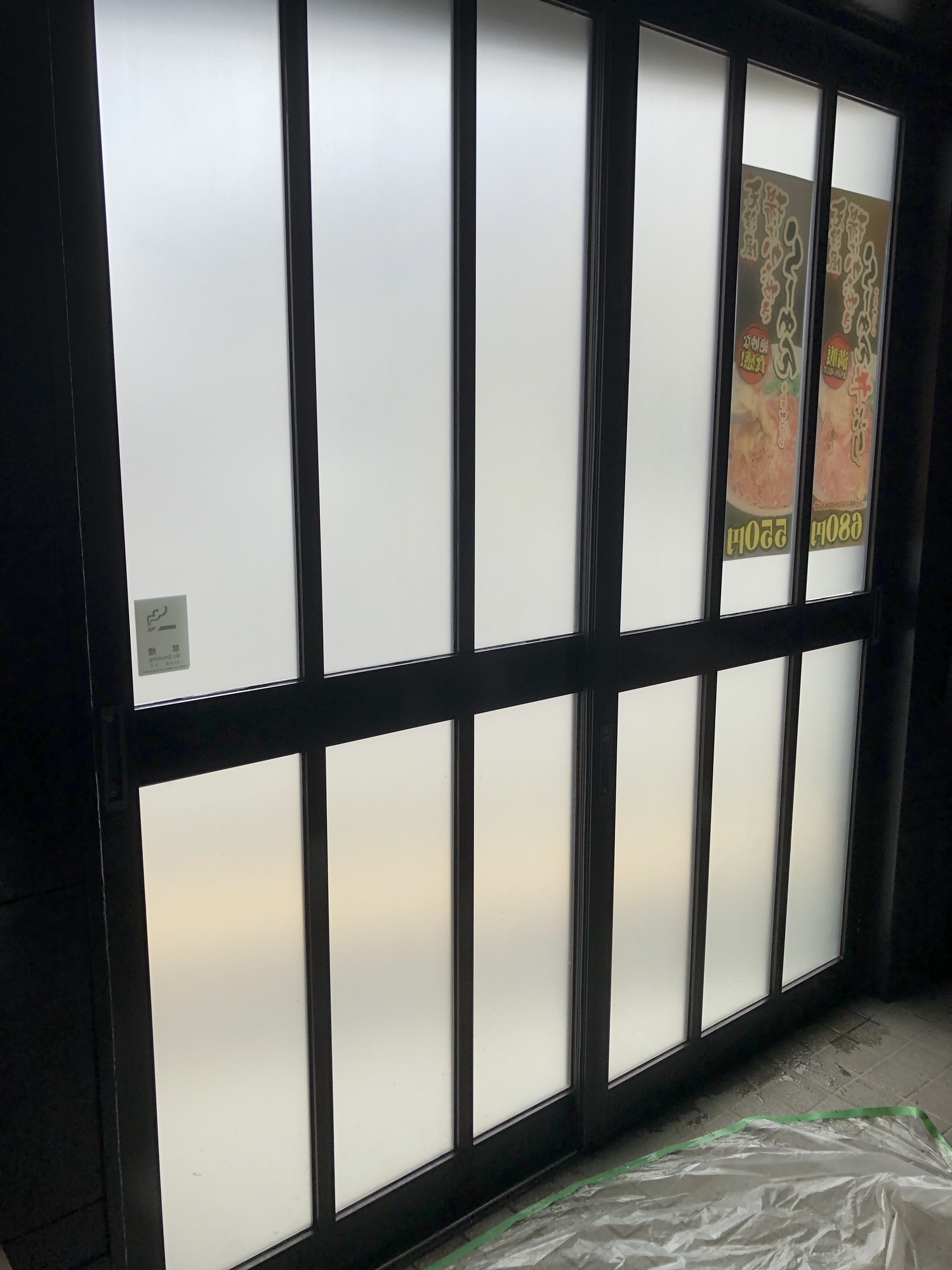 大阪府富田林市に新しくオープンされる鉄板焼き屋さんにてすりガラスタイプの防犯フィルムを施工しました。