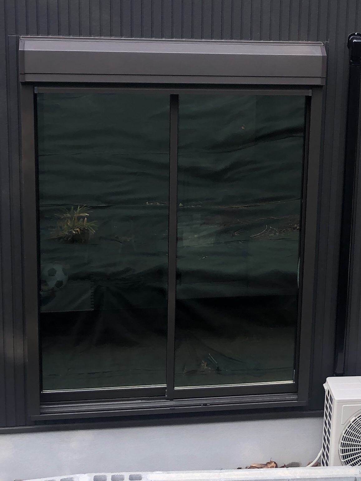 枚方市内の戸建て住宅にて、目隠し対策としてゴールド系ミラーフィルムを施工しました。